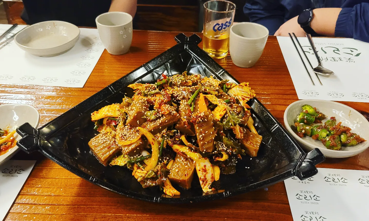 매콤한 소스에 야채와 고기가 많이 붙은 오돌뼈볶음은 이집에서 최고로 맛있었던 메뉴에요~