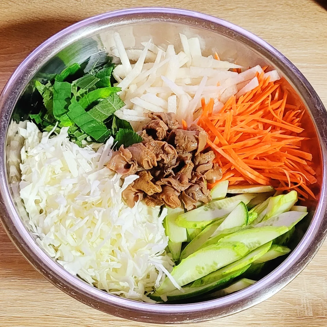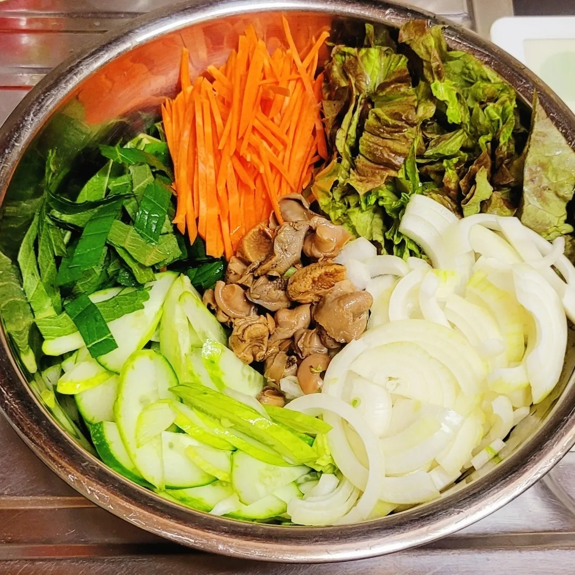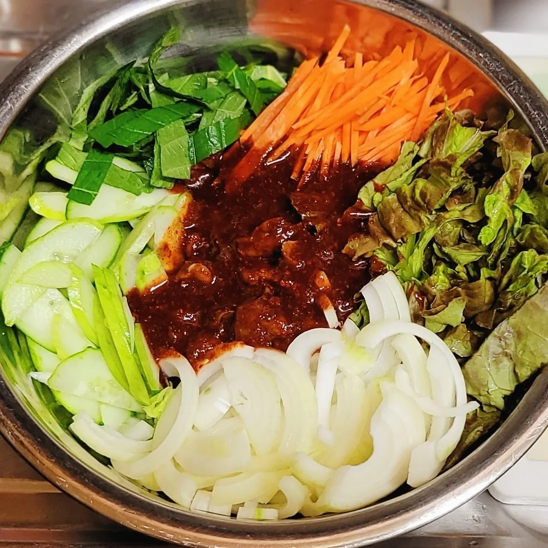 골뱅이도 듬뿍 넣어 새콤달콤매콤 조화로웠어요😊