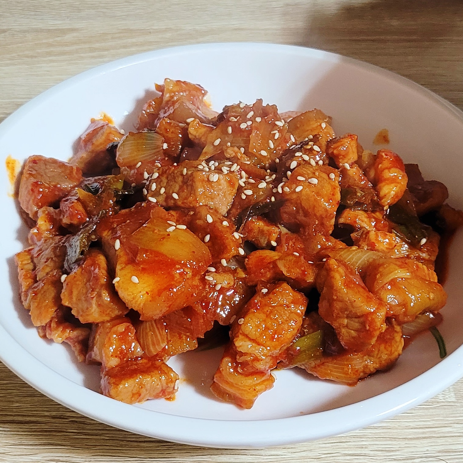 신랑이 집에서 직접 볶아준 뒷다리살 고추장볶음이에요~