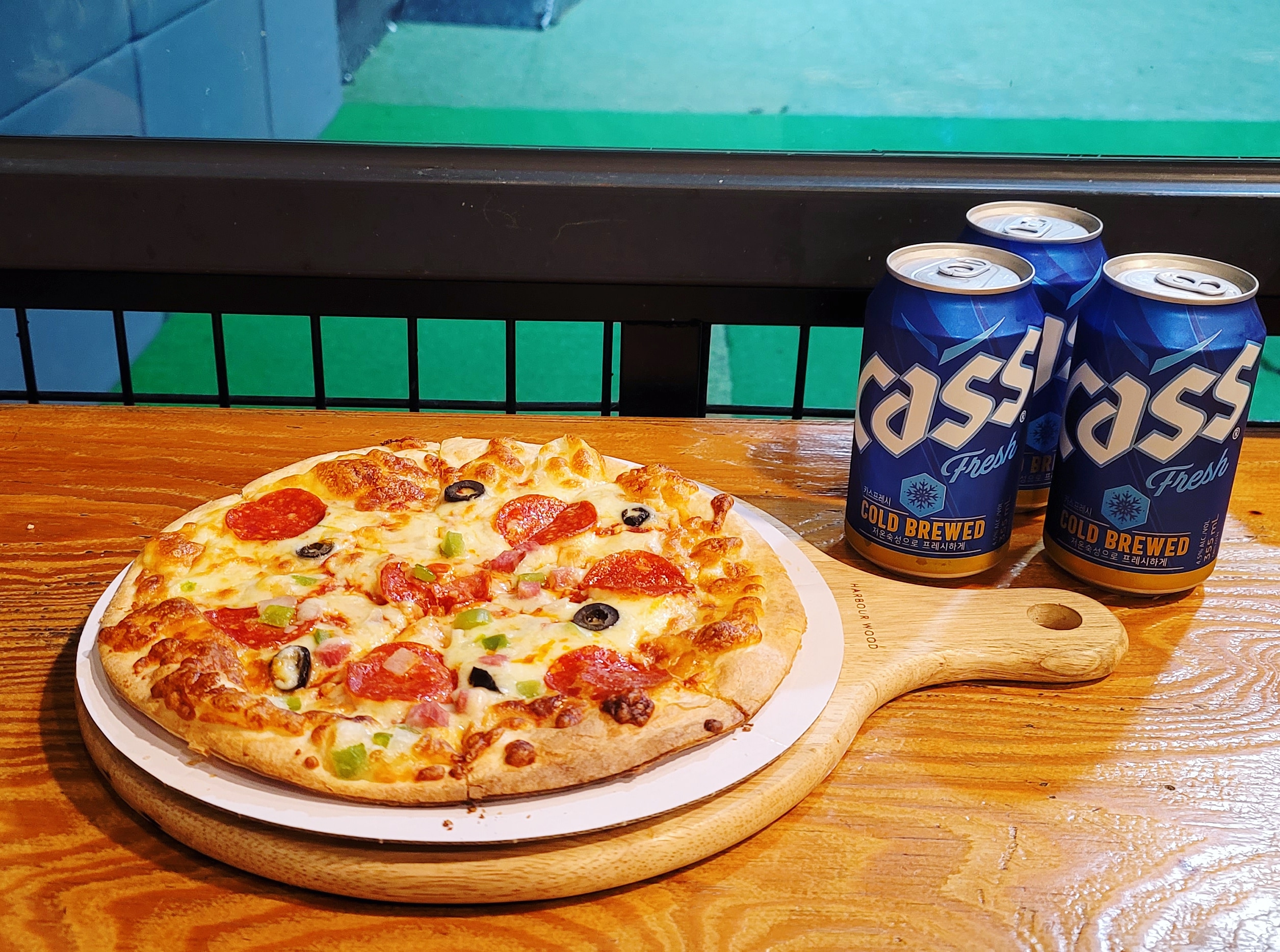 스크린 야구장을 처음 가보았더니 안주를 무엇을 시킬까하다 피자가 보여 피자를 주문했는데 이게 왠일.. 냉동피자를 데워서 나오더라구요~🤣🤣🤣